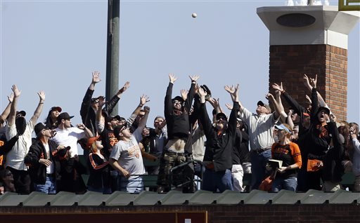 Po home runie Crawforda piłka wyleciała za stadion, wpadła do wody tuż obok żółtej łódki (czy co to było), a jedna z osób siedzących w łódce szybko z niej wyskoczyła i wyłowiła piłkę z wody ;)